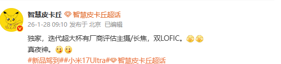 [CNMO科技消息]1月28日,有数码博主爆料称,某手机品牌的迭代超大杯机型正在评估主摄和长焦镜头,或支持双LOFIC高动态技术。结合评论区及博主标签暗示来看,该机或为小米18Ultra。